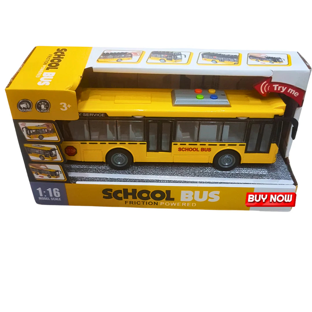 Friction Powered City & School Bus Toy Set – With Light & Sound